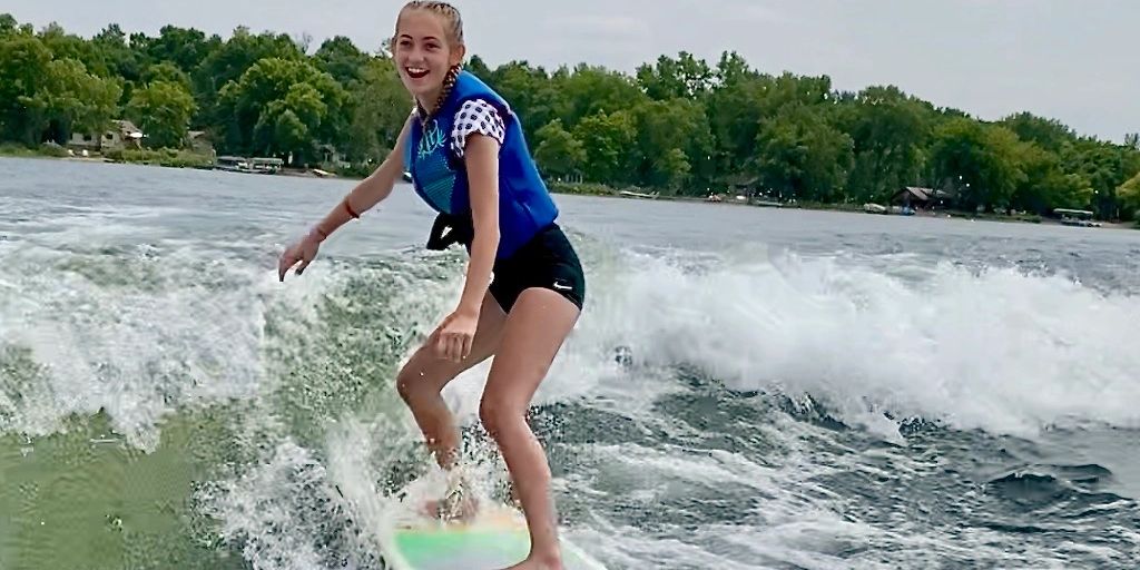 Surf on a wake behind a Mastercraft surf boat. Camp also includes Wake Skate, Water ski, Knee Board, Paddle Board and kayaking on Beautiful Big Marine Lake just 35 min from Saint Paul, 20 min from Stillwater and 15 from Forest Lake.